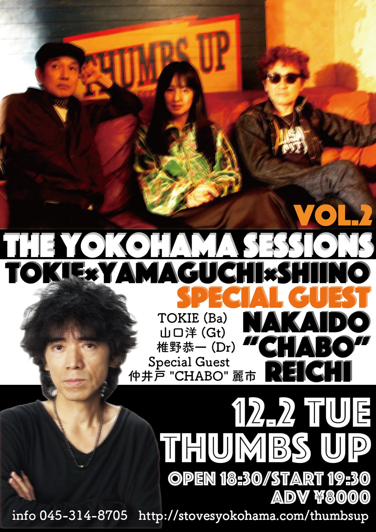会場:THUMBS UP ▶ | (横浜市西区南幸2-1-22 相鉄ムービル3 ▶)出演 : The Yokohama Sessions / TOKIE ✖︎ Yamaguchi ✖︎ Shiino