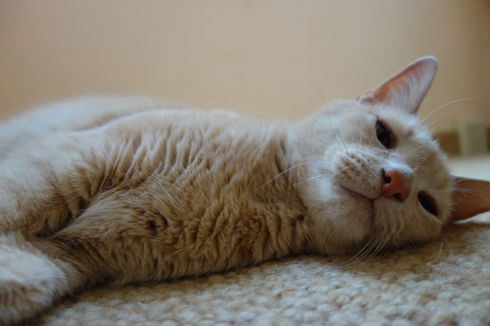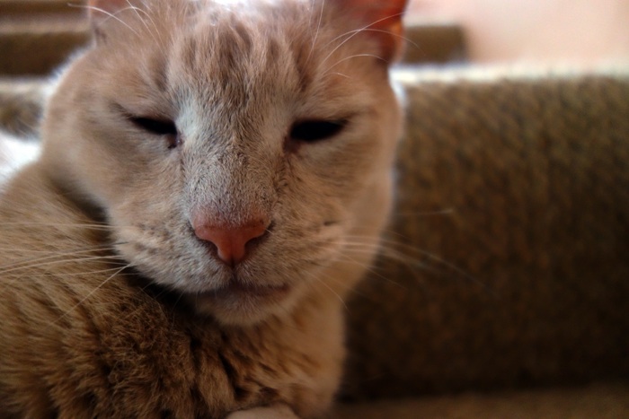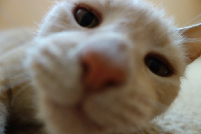 美猫ではないかもだけど、味のあるいい顔してるな~かわいい~。性格もよさそ~。いつか犬の写真も見せてください。