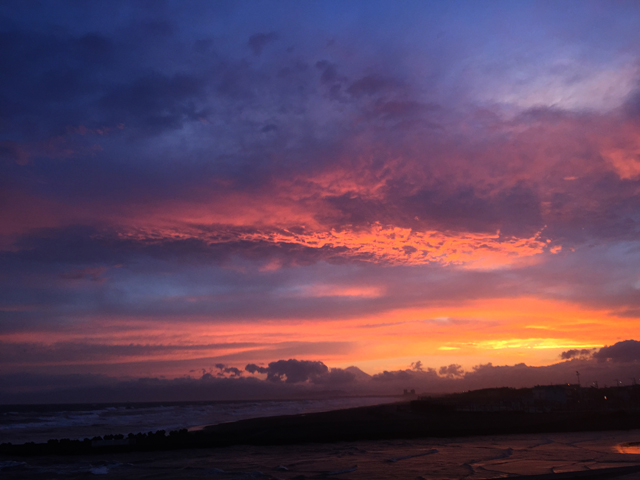真っ赤な夕陽と海と富士山、とても綺麗です(*^-^*)
