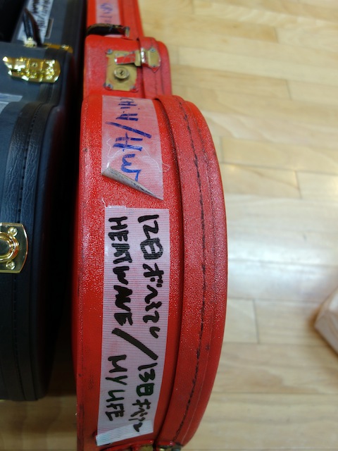 僕の楽器に、行き先のステージを「必死に」書き込むローディー、カンタロウ!
