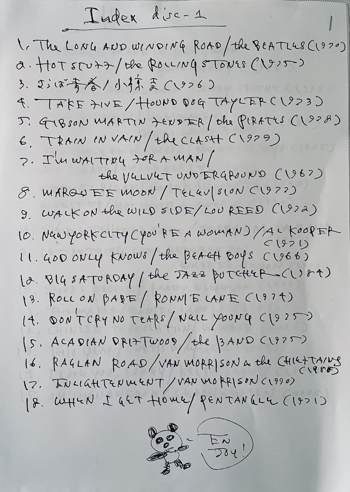 手書きのリストを見ただけでもワクワク感で一杯です。自分の好きな曲やアーティストもあって嬉しいです。メールでの応募しますが、アルバム探してみます。→勿論、購入します。