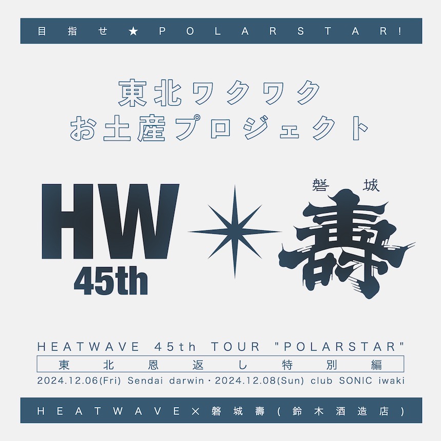 HEATWAVE 45th TOUR “POLARSTAR”の東北恩返し特別編(仙台公演・いわき公 演)にご来場のお客さま全員を対象に、HEATWAVE ✕ 磐城壽(鈴木酒造店)ダブルネーム「枡」をプレゼント!