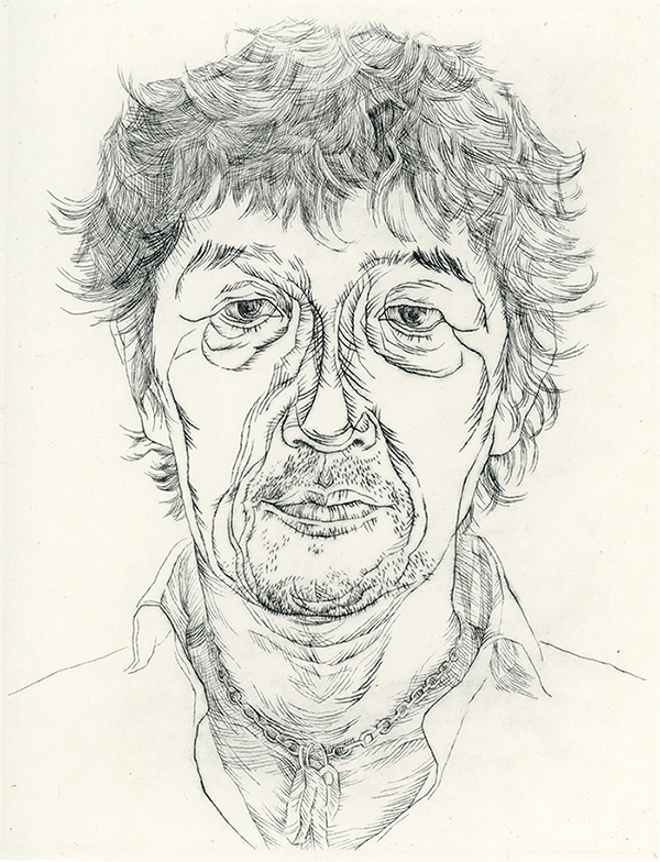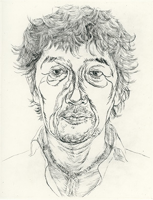 経験の歌。出会ったころは色白で顔立ちの整った少年、きかん坊なところは今も変わらない。そんな山口が四十年近くの歳月を経て、いまも目の前にいる。その顔立ちはもはや昔のようではない。肌には皺が目につき始めた。いくぶん無骨になった顎の線を目で追いながら想像する。この顔を打った雨や吹いた風、この顔を焼いた陽について。そして初めて思った。旅が経験であるようにこの顔を描いてみたいと。喜怒と愛憎、あるいは慈悲。さまざまな鑿で刻まれた旅の刻印を辿るように。